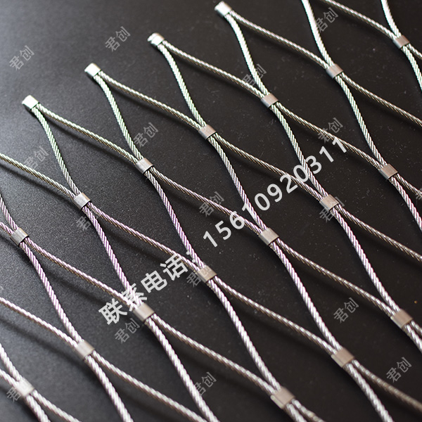 由優質不銹鋼繩和不銹鋼卡扣經特殊工藝加工而成,外觀光亮、獨有線條、網格均勻、韌性好、美觀堅固、高檔大方、實用性強、裝飾防護效果品著、用途廣泛,安裝簡易,防護網首選材料。